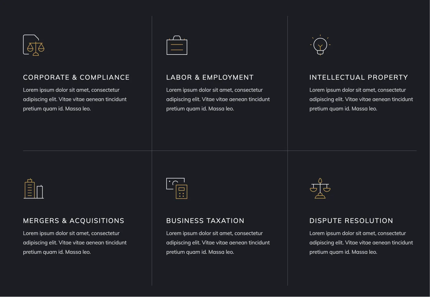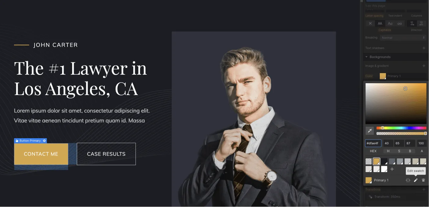 Lawyer template is built using Color Swatches, meaning that you can easily edit a color swatch to be updated site-wide.