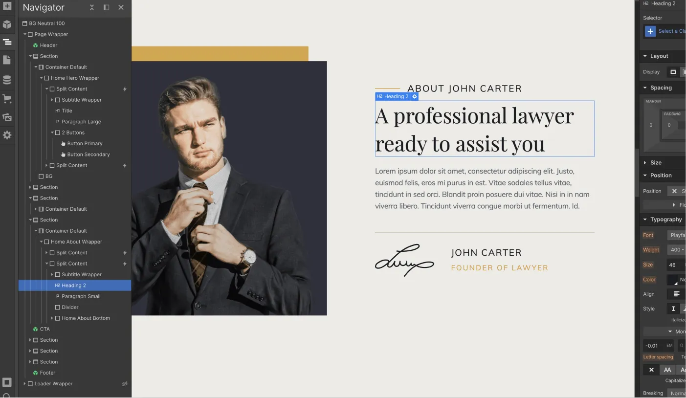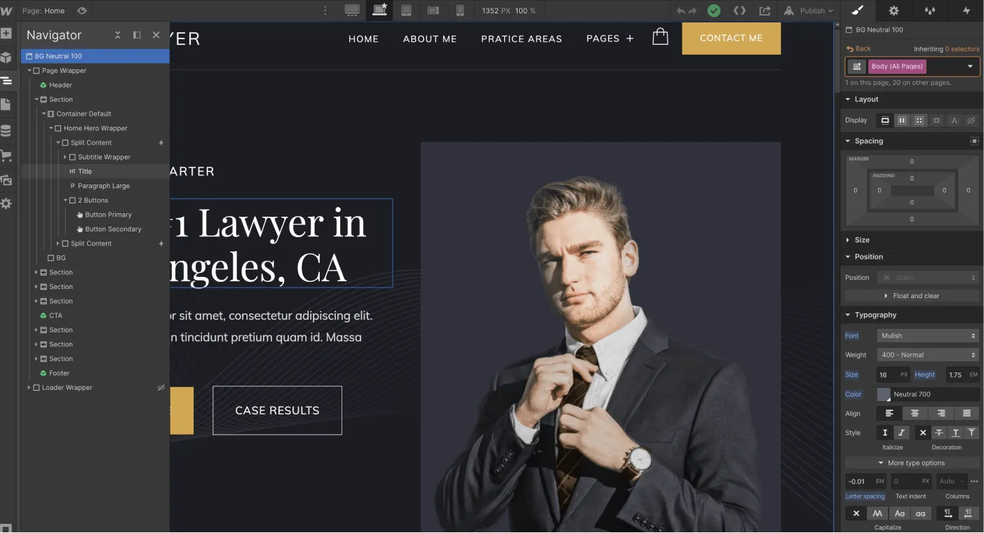 As you could see above, Lawyer was built on Webflow using the best practices to make it very easy for you to edit the template and customize it to your needs.